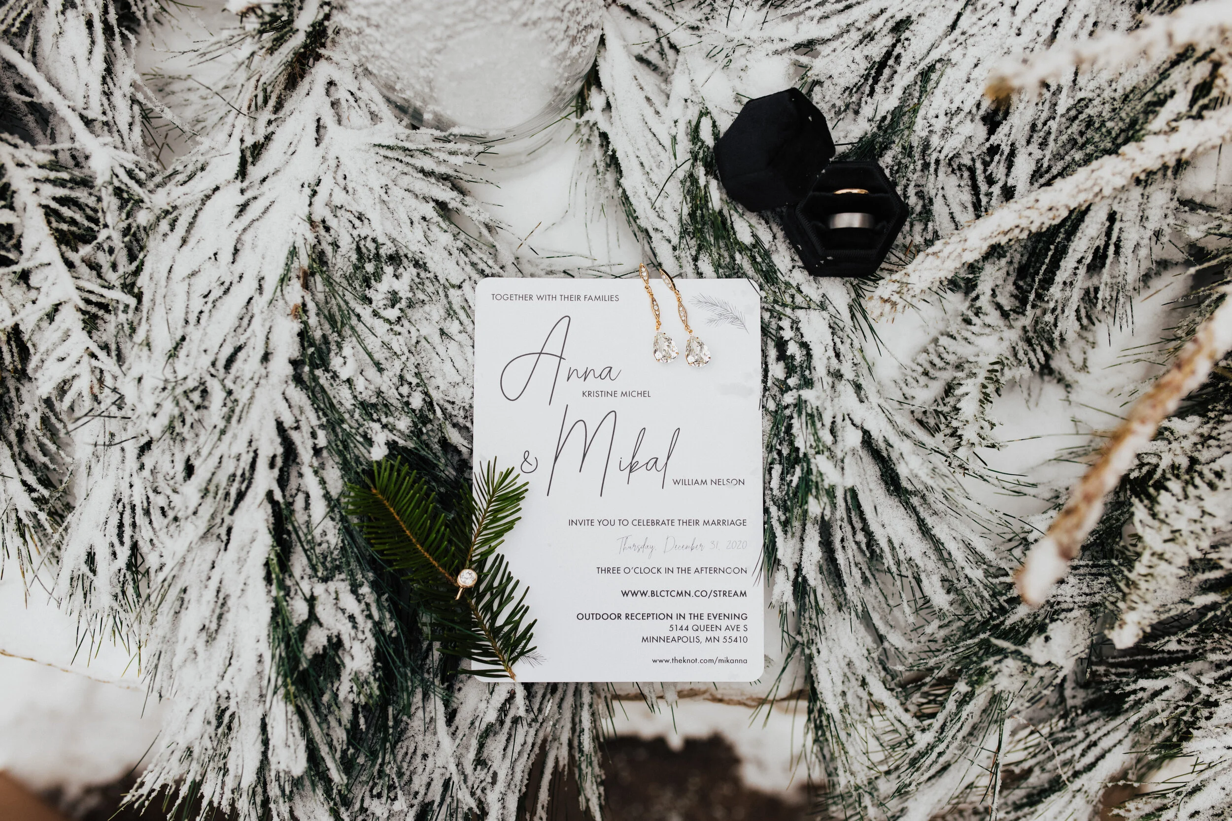 Something White bride + stylist, Anna married her best friend in a stunning Minnesota wedding on New Years Eve. Nothing about their day (or engagement - hello global pandemic) was what they expected but dang did it turn out gorgeous. We love all of the personal details of Mik + Anna’s special day. From the ceremony + reception being held in Anna’s parents yard to Anna’s something borrowed being a scarf from her neighbor + rocking handmade masks, every moment of this day is jammed full of meaning + warmth.