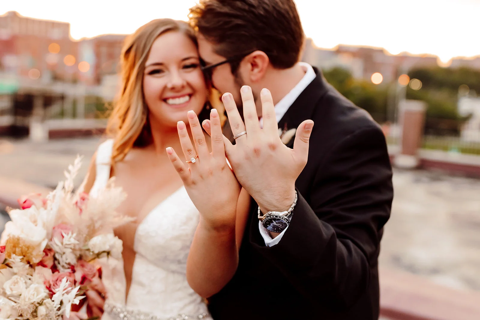“All throughout our college years, we were constantly asked, "When are you two going to get married?" We had already been together for a long time at that point, so it was pretty obvious that we were going to get married at some point. Our answer was always the same, we were waiting until Tyler finished law school so that we were more financially ready and had the extra time to plan. We had agreed that we would go ring shopping before the proposal but we hadn't done any jewelry store trips yet! On Wednesday, September 12th, 2018, I got a call from Tyler while I was at work that he passed the bar exam and we were going to dinner with his parents that evening to celebrate. After work that day, I had some prior plans set to get coffee with my best friend, co-worker, and Matron of Honor - Alex Esposito Burton. So after our coffee date, Tyler met up with me so that we could drive to dinner together. Only he drove us to a park instead of a restaurant and I knew something was up! He proposed and Alex followed us to snap photos. To keep it a surprise, Tyler proposed with a sample ring from the jewelry store. I completely thought it was real at the time until he confessed it was fake! Later, we went and picked out the real ring.”