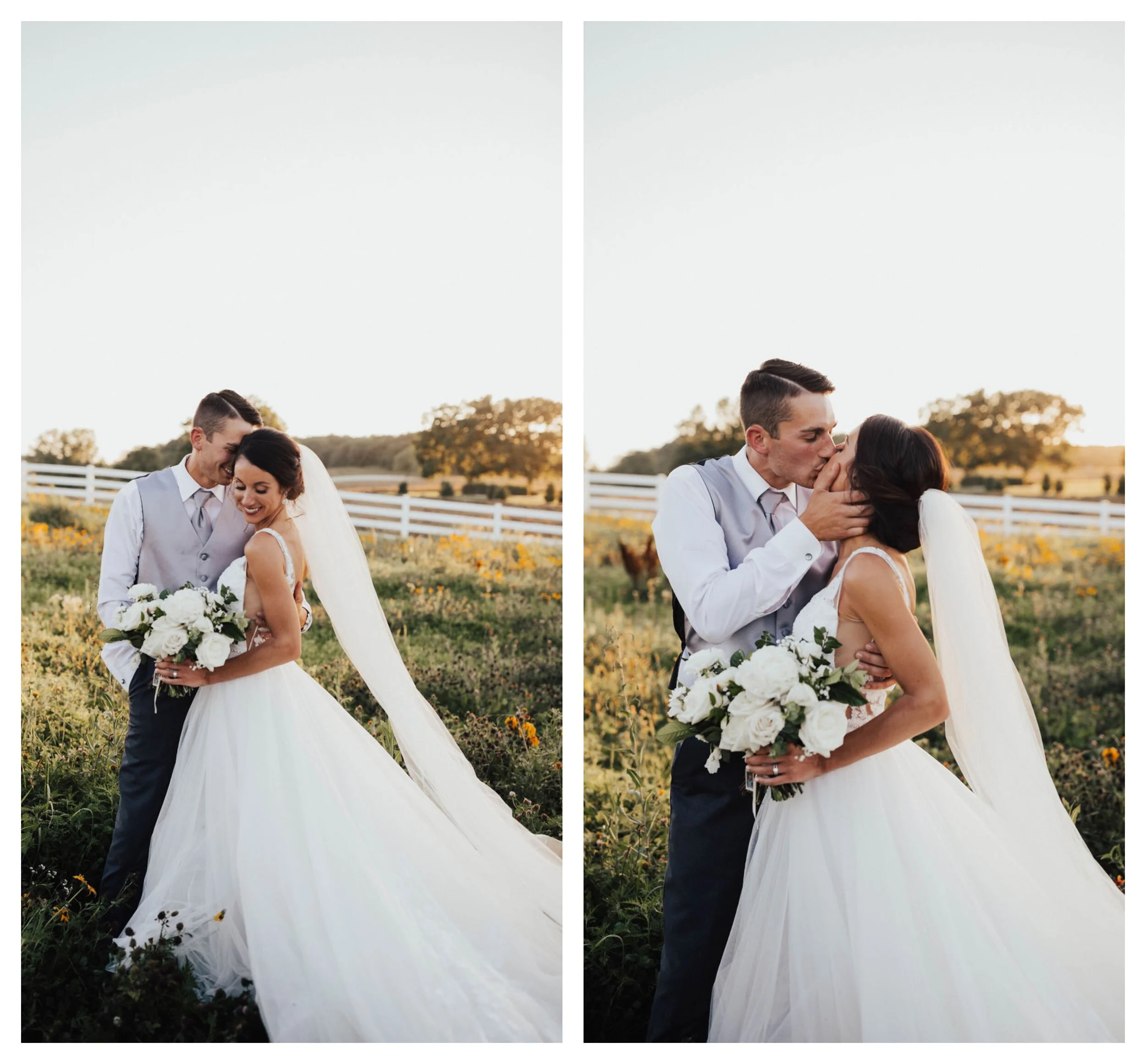 Megan went with a custom Casablanca Bridal gown that couldn’t have been more perfect for their summer wedding! It’s light + flowy + looks dang good frolicking through a field of wildflowers - if we do say so ourselves.